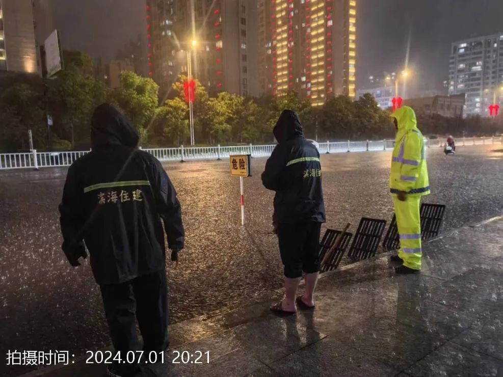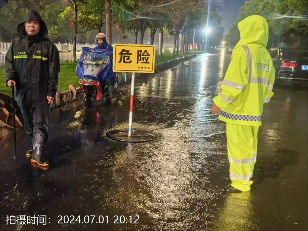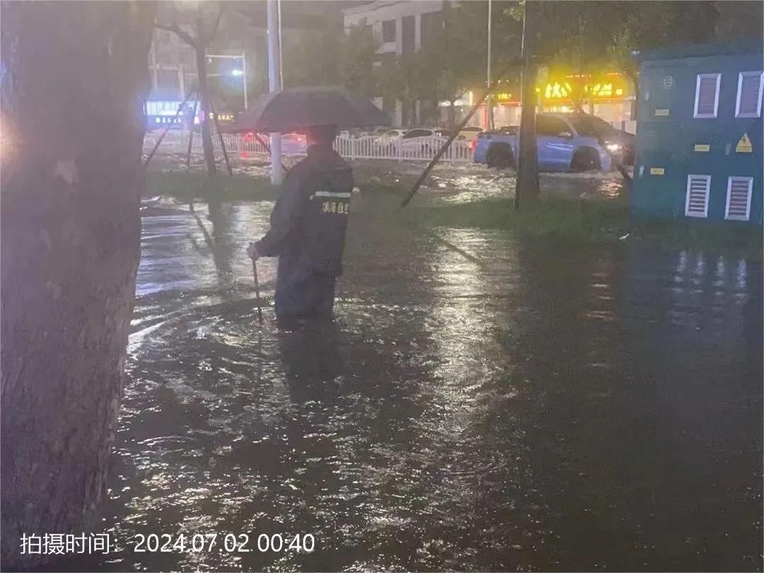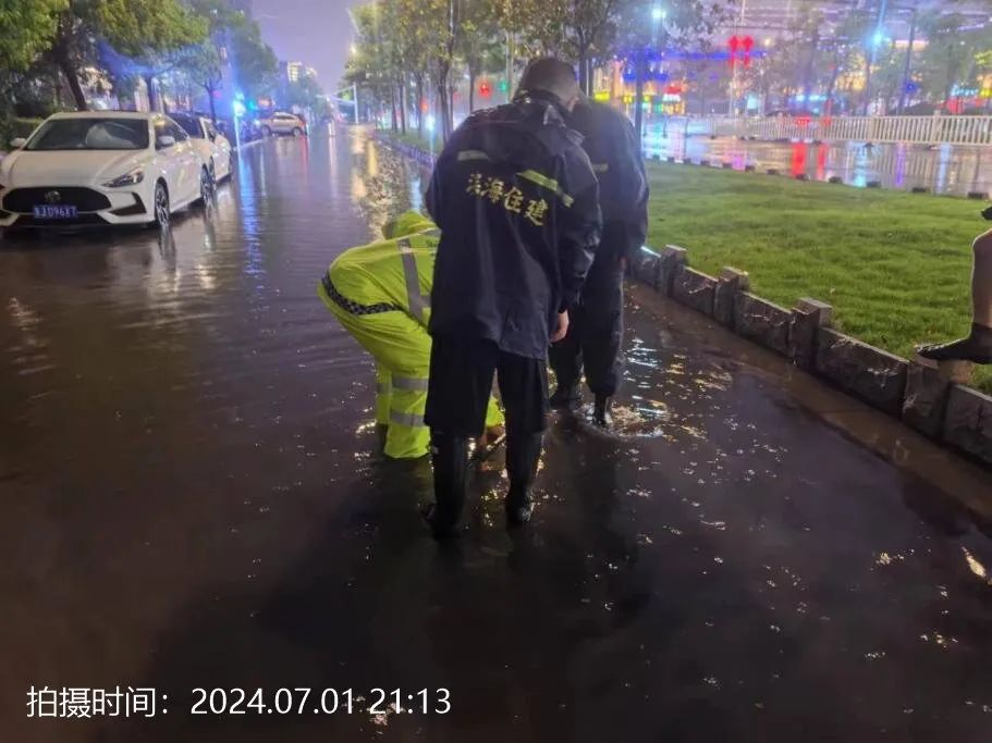 7月1日晚,我县出现阵雨、局部大暴雨天气。本轮强降雨县城小时雨量超过75毫米,累计雨量超过150毫米。大雨来袭,县住建局快速反应,第一时间启动防汛预案。防汛应急抢险机动队成员闻“汛”出动,全部赶赴易积水点位,开展巡查和突击抢险处置工作,全力保障人民群众安全出行、安定生活。