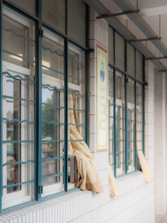 清风吹过封着铁栅栏的窗户