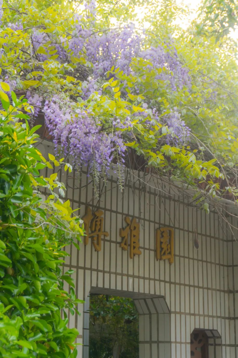 经过散发着浓烈的香气的紫藤花长廊