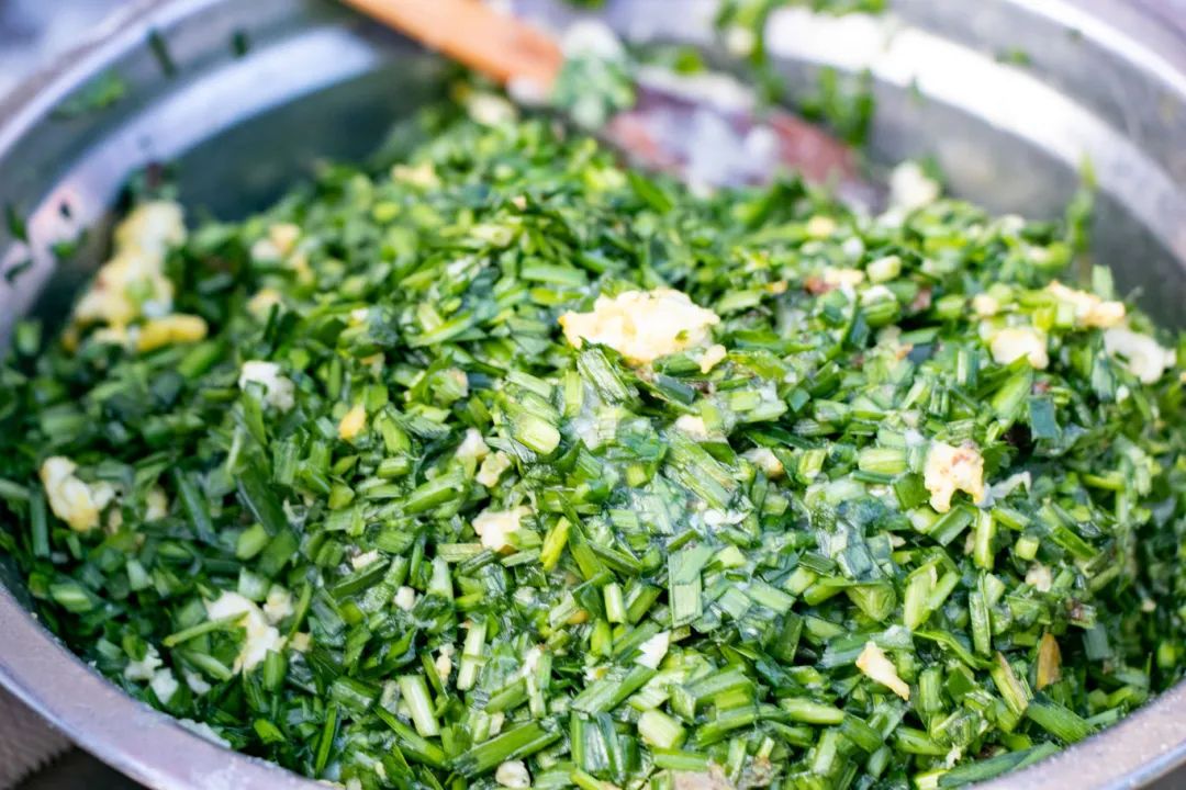 “韭菜馅和猪肉馅掺起来”