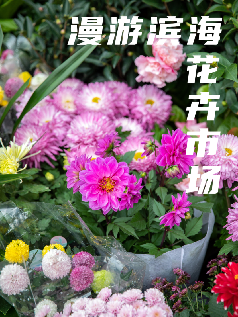 在滨海美食街的花卉市场