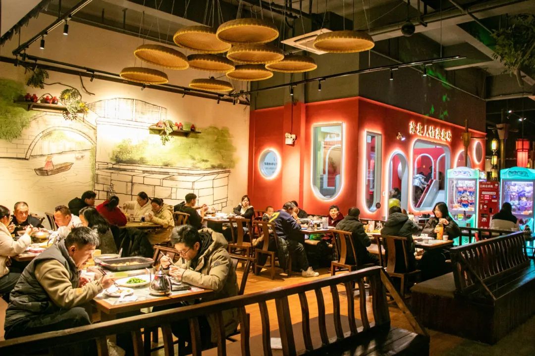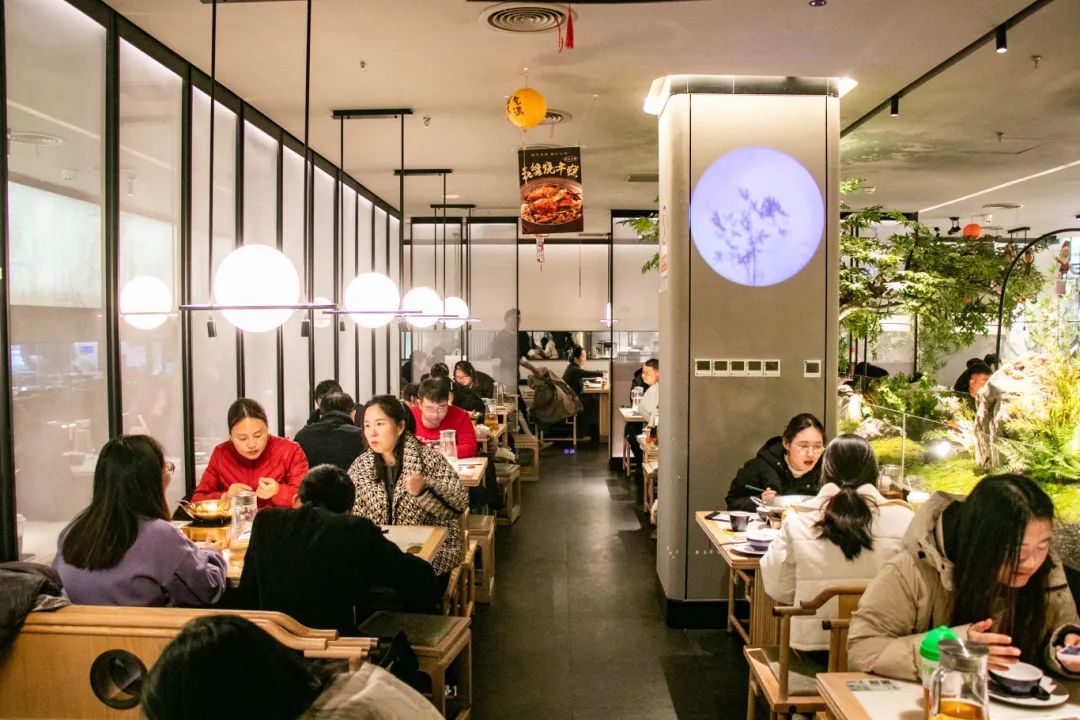 店内灯火通明,顾客满座