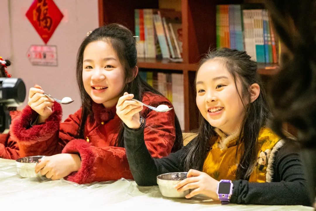 大家共同品尝美味的汤圆,猜灯谜