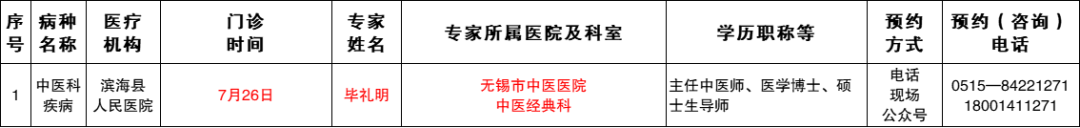 7月下旬“周周有名医”来滨