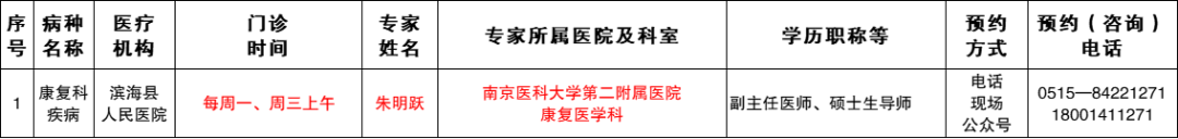 坐诊病种及专家信息
