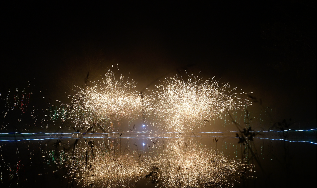 当暮色漫过梨花语,打铁花的匠人挥起铁勺,滚烫的星火在黑夜里绽放成花,火舞演员的裙摆随火焰流转,非遗的厚重与艺术的灵动在此刻交融。