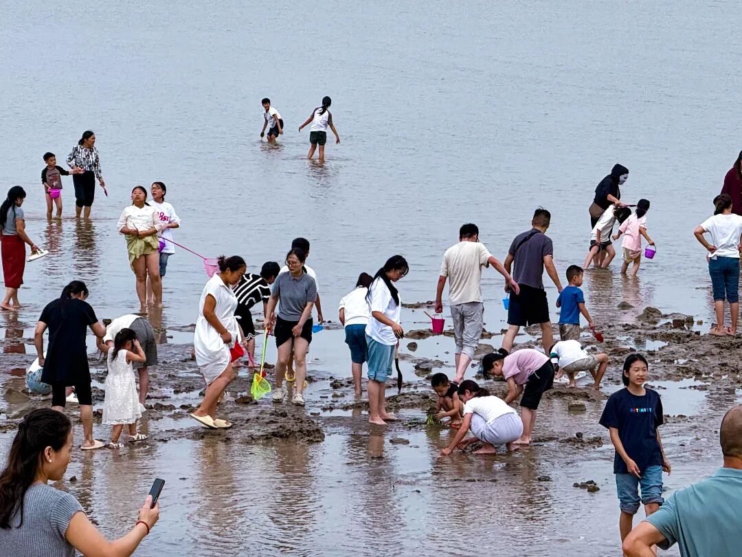 而博物馆,更像是一本摊开的“滨海时光典籍”,每一件文物都藏着岁月的故事,等着与游客相遇。市民们三五成群缓缓前行,听文物背后的岁月故事,时不时停下脚步凑近展柜,轻声交流着所见所感;亲子家庭则格外热闹,孩子牵着家长的手,睁着好奇的眼睛追问展品细节,家长耐心解答的同时,不忘用手机记录孩子认真的模样。数字互动区前,大家触摸屏幕“解锁”文物新视角,偶尔还会分享发现的有趣细节。整个场馆没有喧嚣,却满是沉静的欢喜,每个人都在与滨海的过往对话,收获着独特的文化体验。