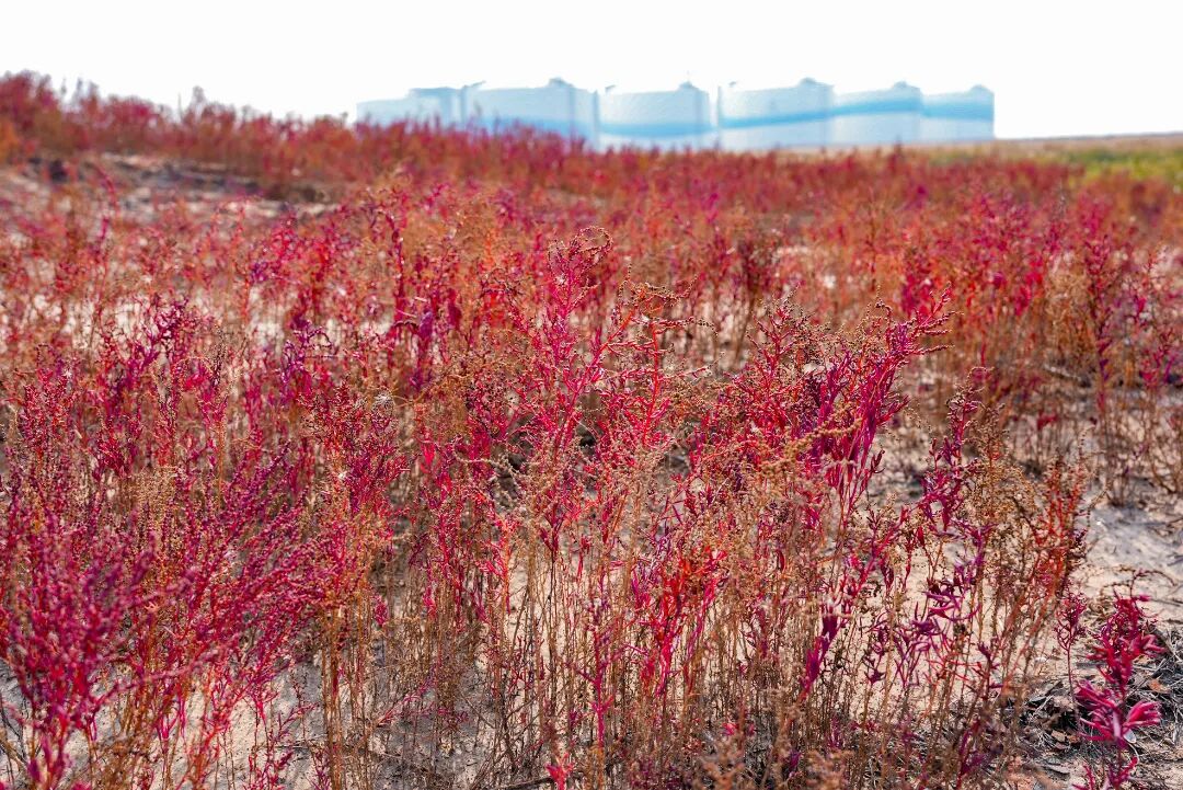 这片红之所以动人,不仅在于它极致的色彩,更在于它在盐碱滩上扎根生长的坚韧。沉默的LNG储罐守护着港湾的能量,而这片盐蒿,则用最热烈的方式,守护着滨海港最本真的生机与希望。
