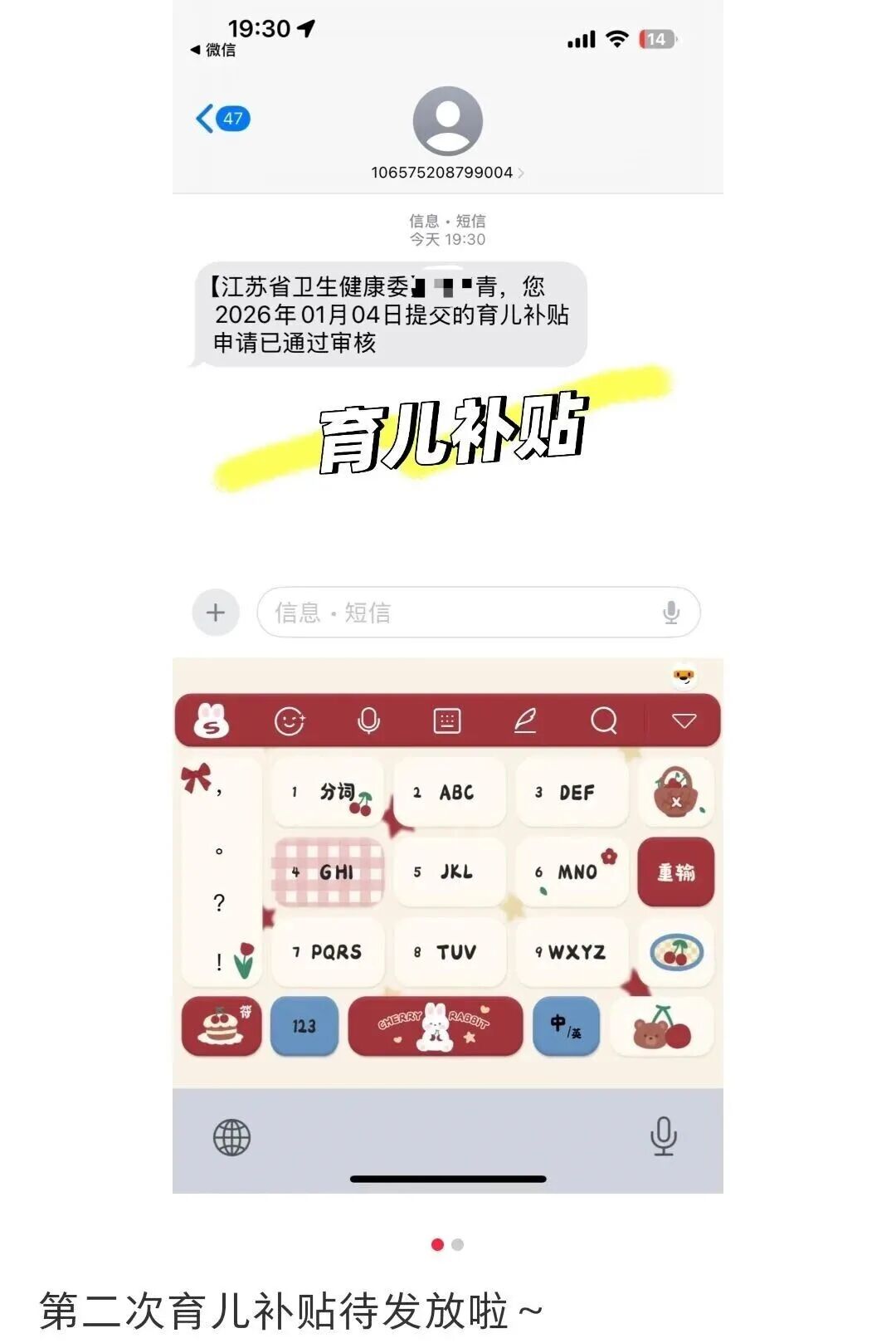 “您2026年提交的育儿补贴申请