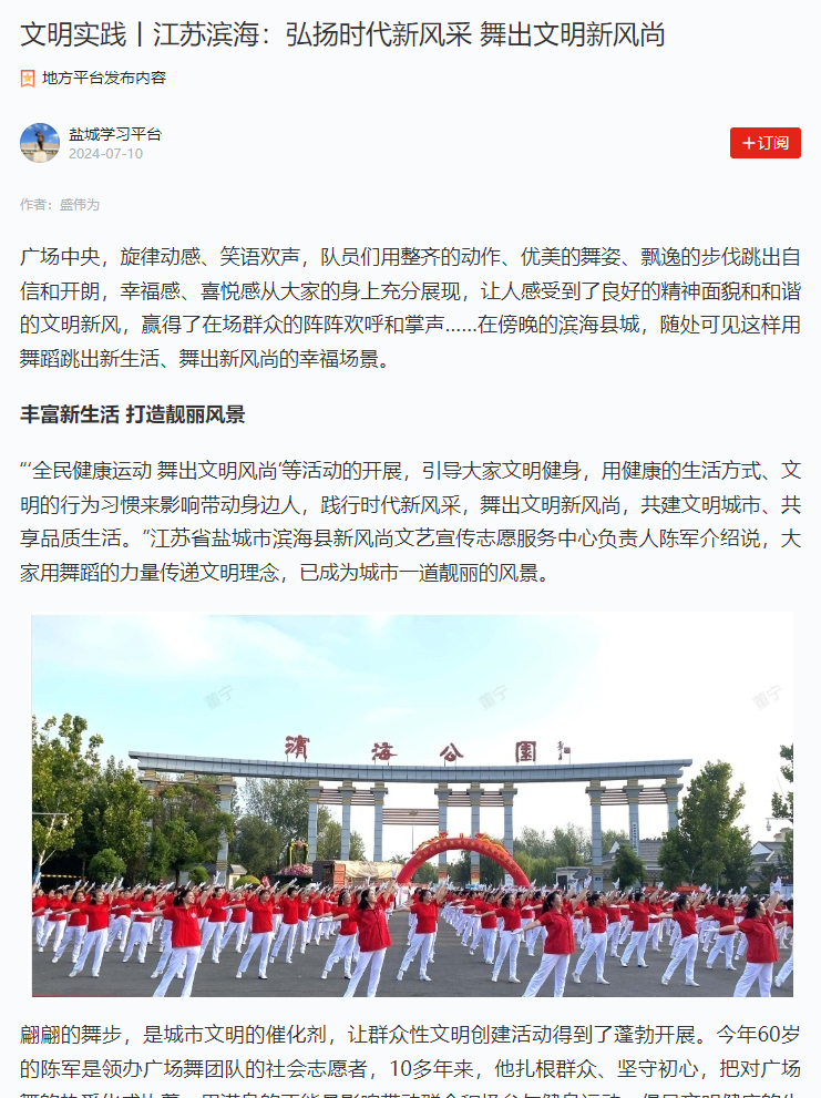 多家媒体报道!滨海县将这股文明新风舞“出圈”!