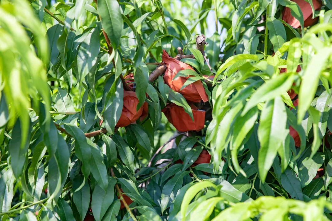 低矮粗壮的桃树上硕果累累