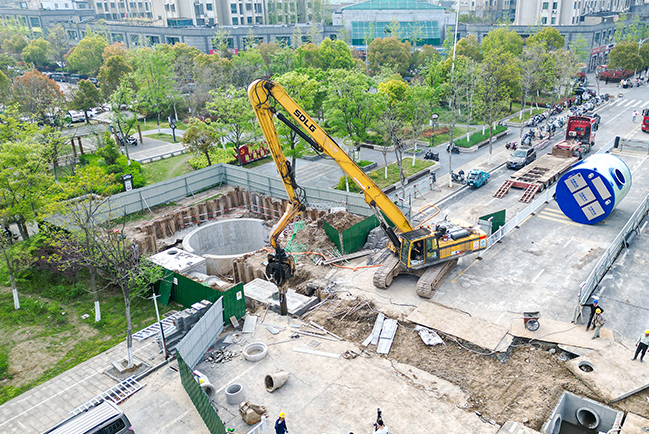 滨海县城学前路积水点改造现场