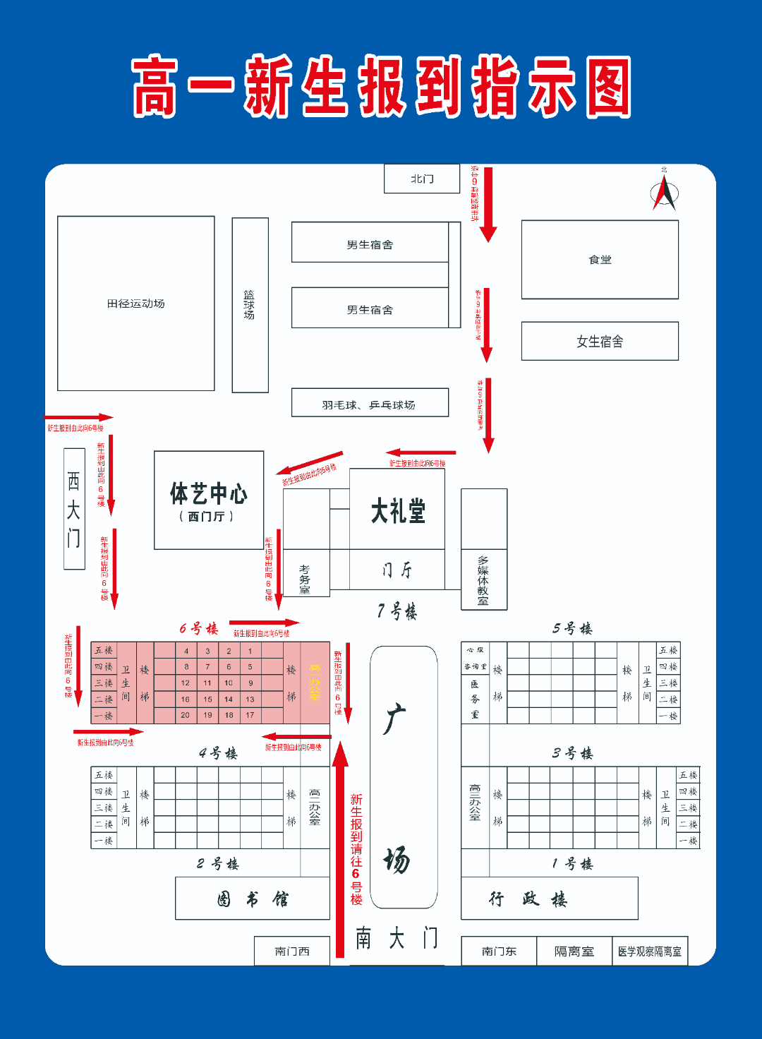 2、报到地点:高一年级(六号楼)孩子对应的班级(班级具体位置看后面图片)。